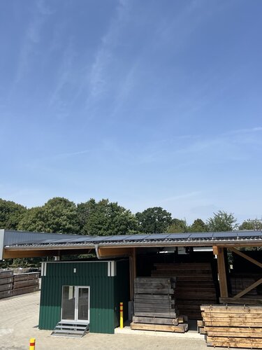 Das Hallendach wurde mit 320 Modulen bestückt. Die erzeugte Energie ermöglicht es uns, unsere drei konventionellen Trockenkammern deutlich umweltfreundlicher zu betreiben.