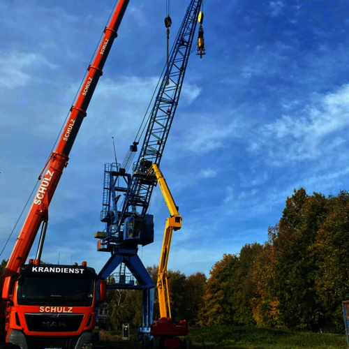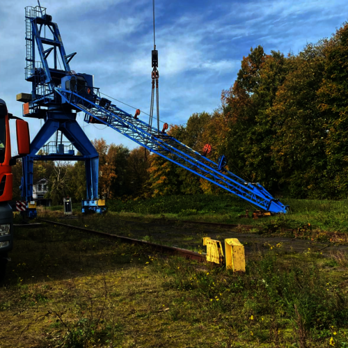 Wir verabschieden uns von unserem blauen WOB-Kran in Hamburg-Billstedt.