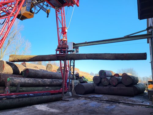 Für die Restaurierung eines historischen Segelschiffs wurden wir mit bis zu 13,5 Meter langer Eiche beliefert. Diese wurde eingeschnitten und wird bei uns lagern und trocknen bis zur Verarbeitung durch den Kunden.